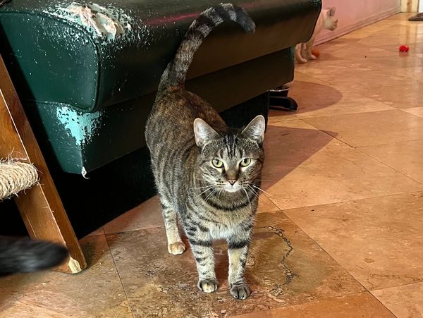 Patti is a 1-year-old tabby who is as sweet as they come. She’s confident, playful, and loves being the center of attention. Patti does great with other cats and is always ready to charm everyone she meets.